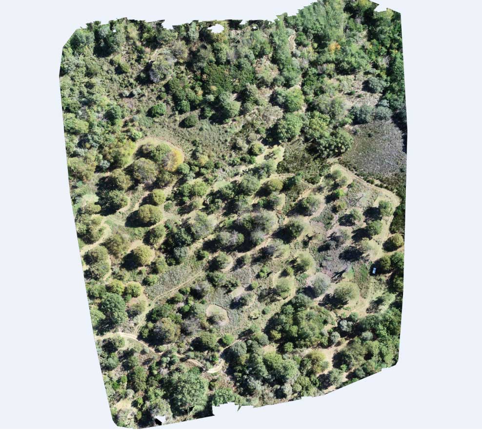 Las imágenes de dron se procesan para obtener MDT/MDS y ortofotos métricas en formatos estándares como GeoTIFF.