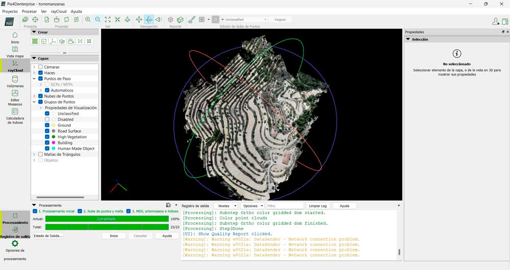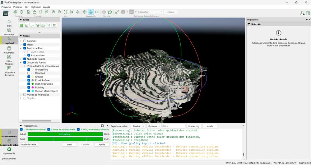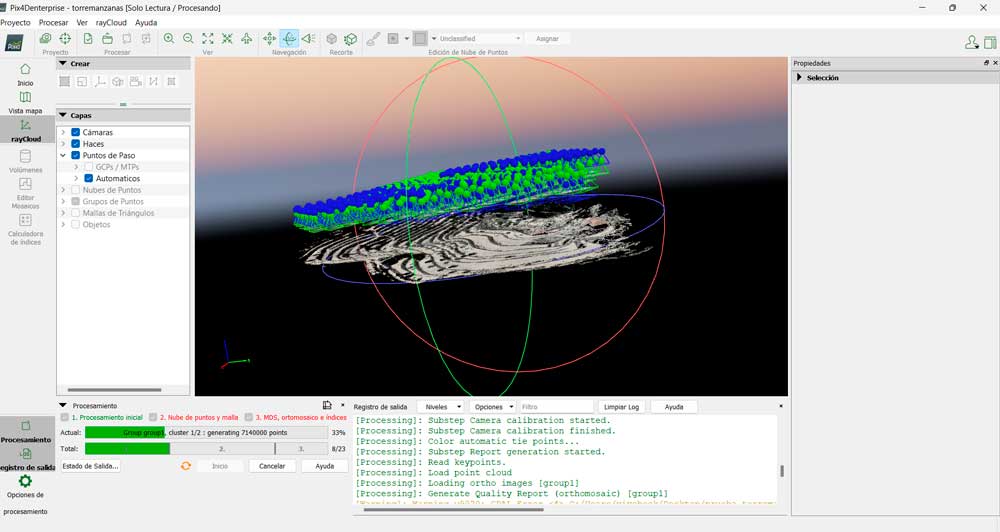 Procesado: aerotriangulación, ajuste bundle, denso, clasificación terreno.